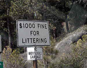 タホ湖岸にあり不法投棄は1000ドルの罰金という看板