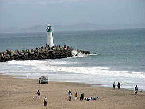 下もサンタ・クルスの浜辺。波が高いので、サーフィンのメッカとなっている。サンフランシスコには浜辺はほんとどないので、おそらくサンタクルス一帯が夏の海水浴場の場となっているのだろう。
