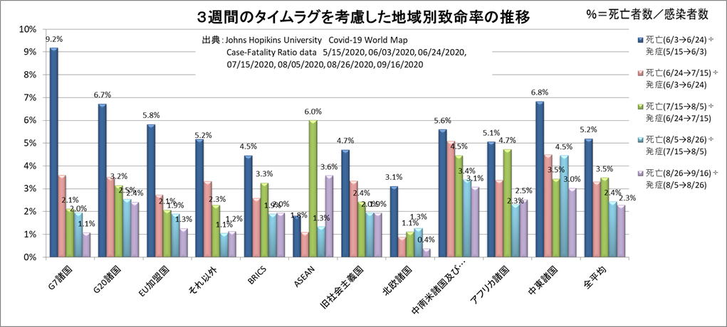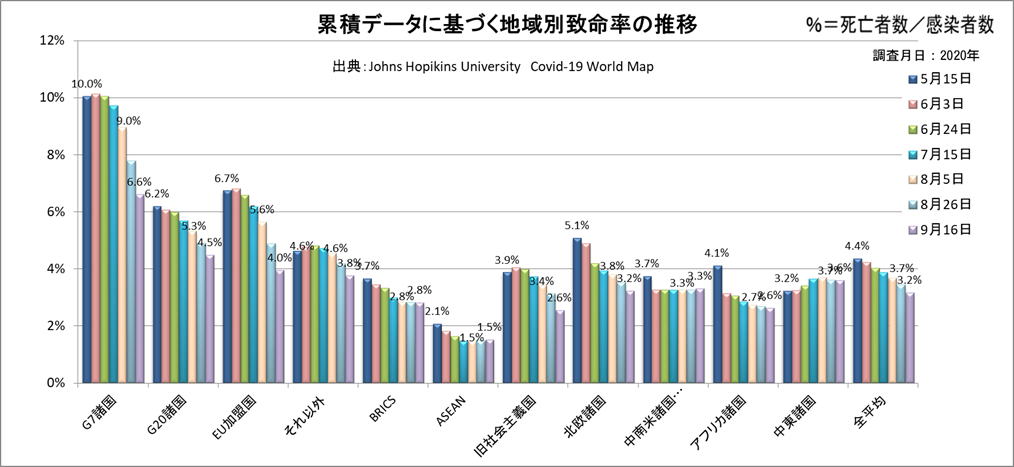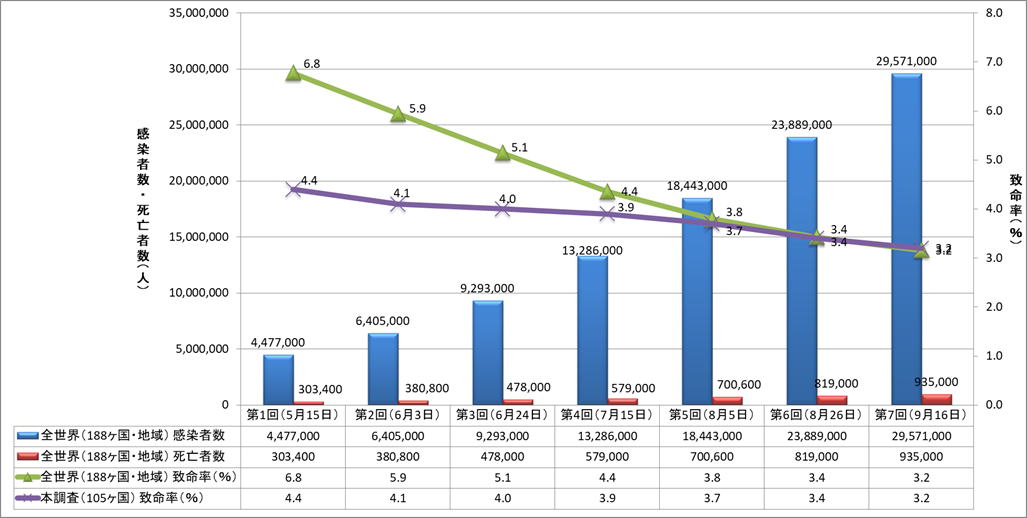 本調査の目的は世界各国。地域、経済グループ等を対象に、致命率(CFR:死亡者数/感染者数)を