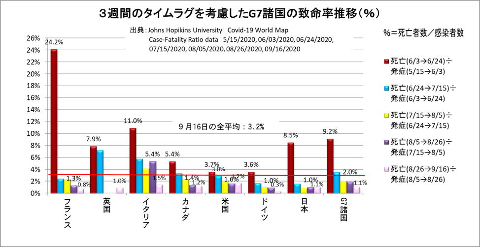 このことから、この間実施してきたCFR調査対象国について、感染から死亡までに概ね3週間の
