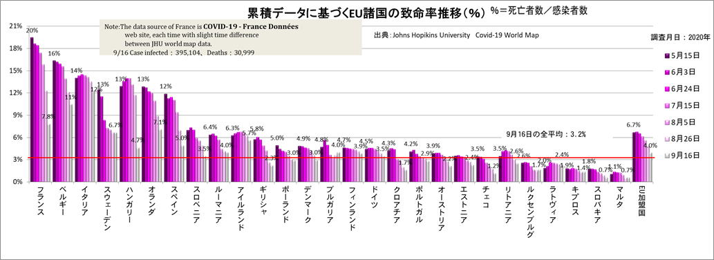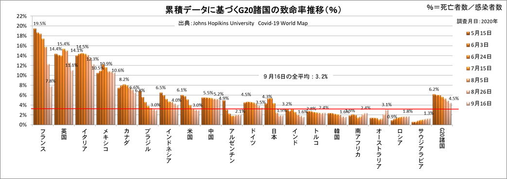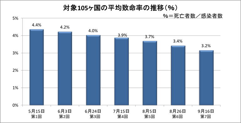 5月から4ヶ月にわたり、概ね3週間毎に継続してきた世界のCFR調査から、感染