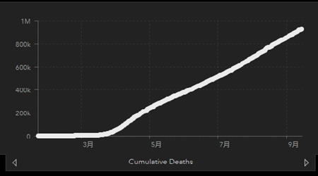 2.死亡者数推移:累積(940,605人)と日別(5,785人) 2020年9月16日、午後1:22JST現在