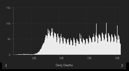 減少傾向=収束の兆しは見えず、7月~9月にかけて、1日あたりの死者数は、9,000人から