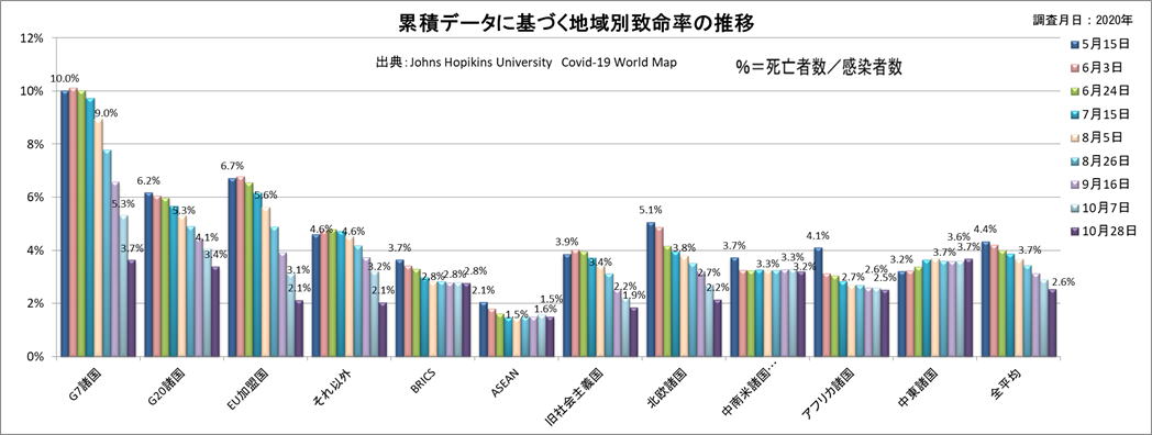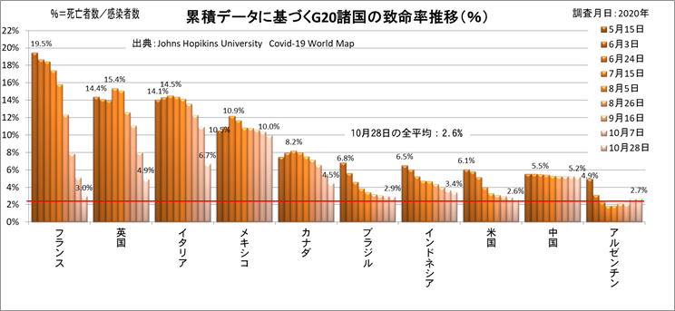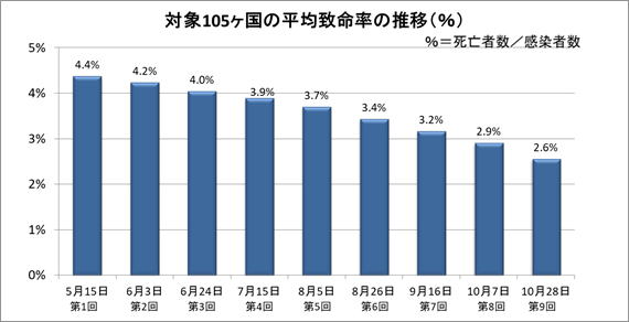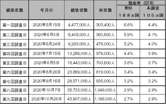 本調査の目的は世界各国。地域、経済グループ等を対象に、致命率(CFR:死亡者数/感染者数)を