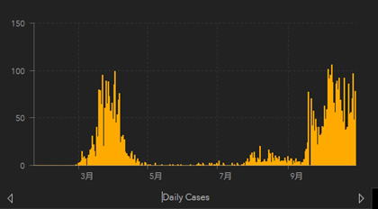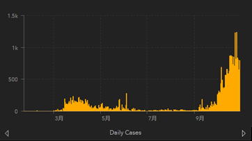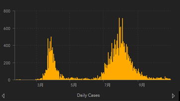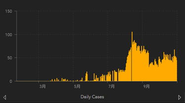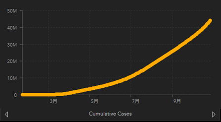 1.感染者数推移 左:累積(43,907,193件)と 右端:10月5日(465,671人)(データとして反映