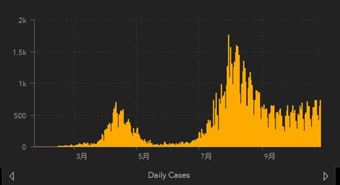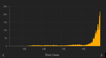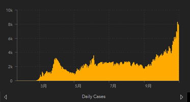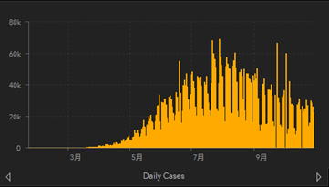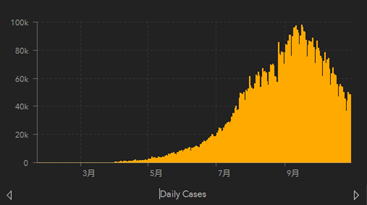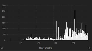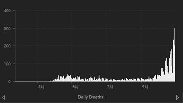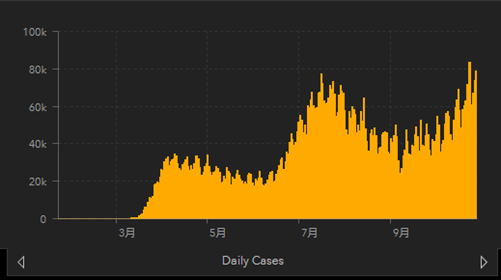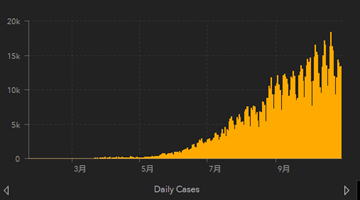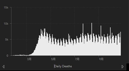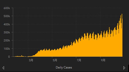 上図より10月7日時点の世界の感染動向を見ると、感染者数、死者数ともに依然として