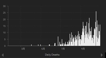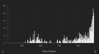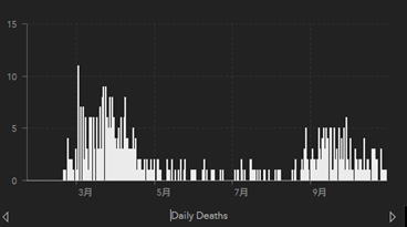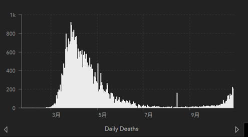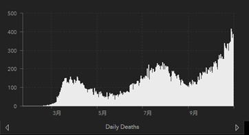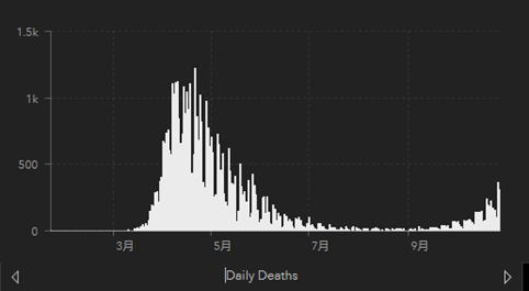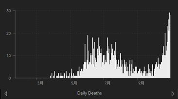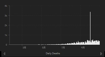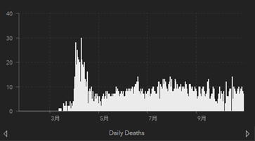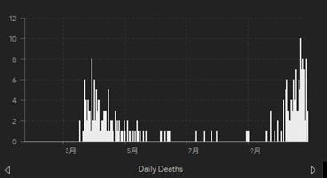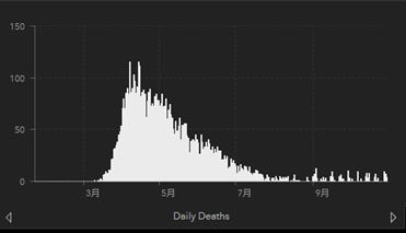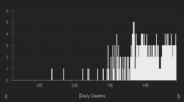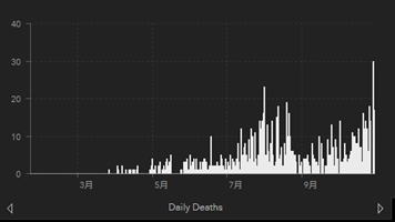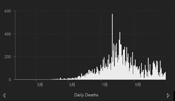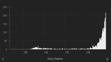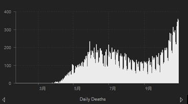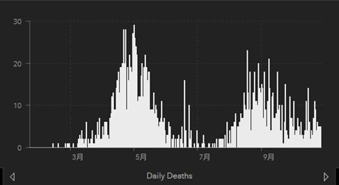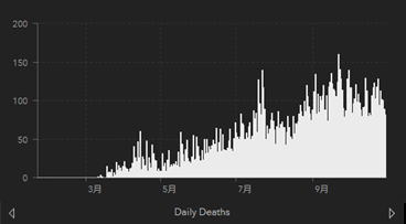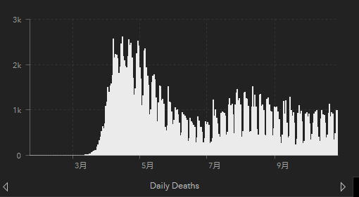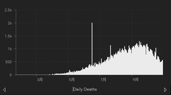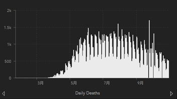 減少傾向=収束の兆しは見えず、7月~10月にかけて、1日あたりの死者数は、7,000人