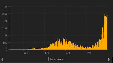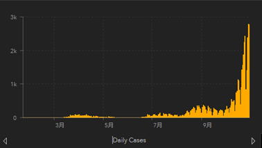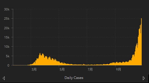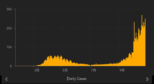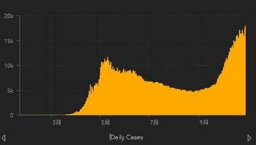 月に再び10%近くまで上昇した。10月5日に28,000人超の感染があり、同日2,700人超が死亡した