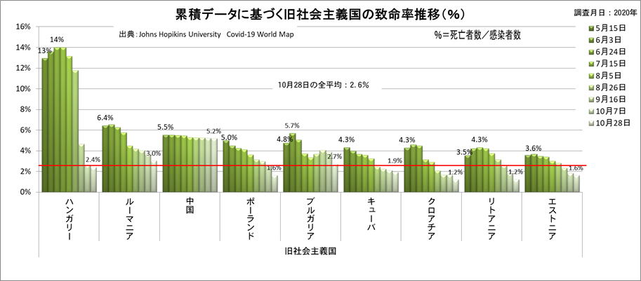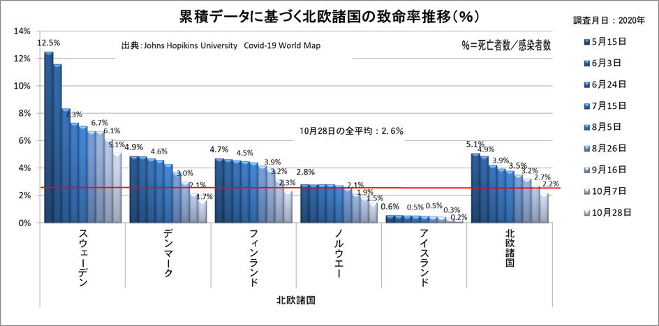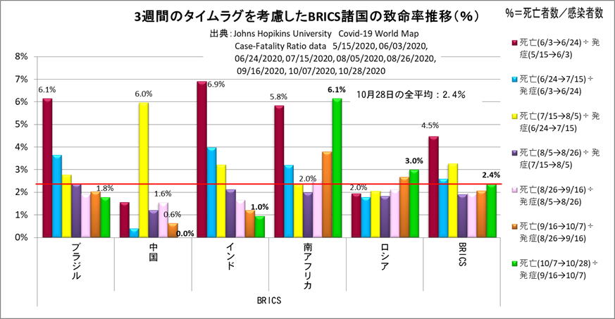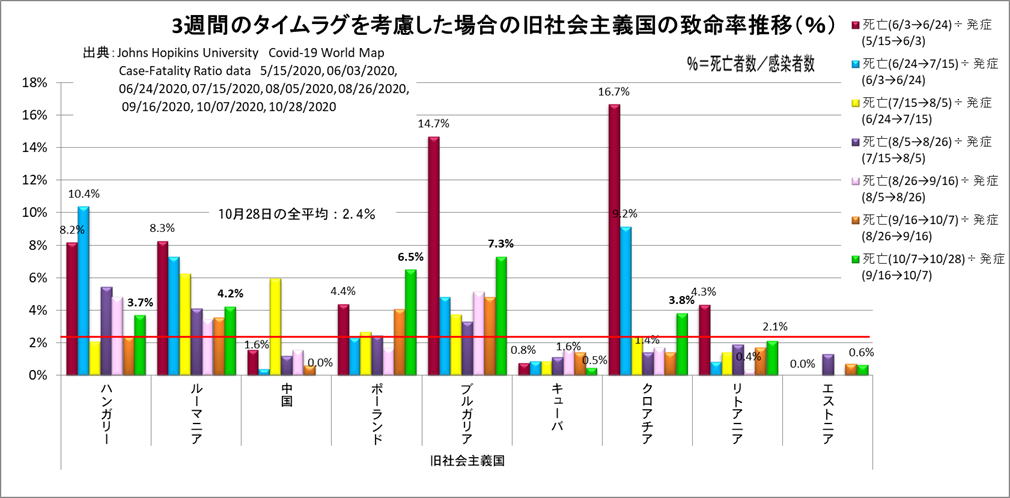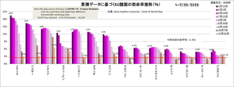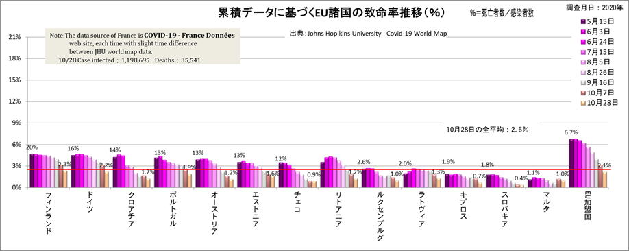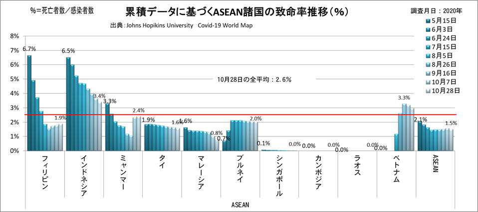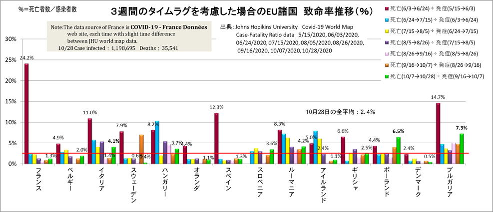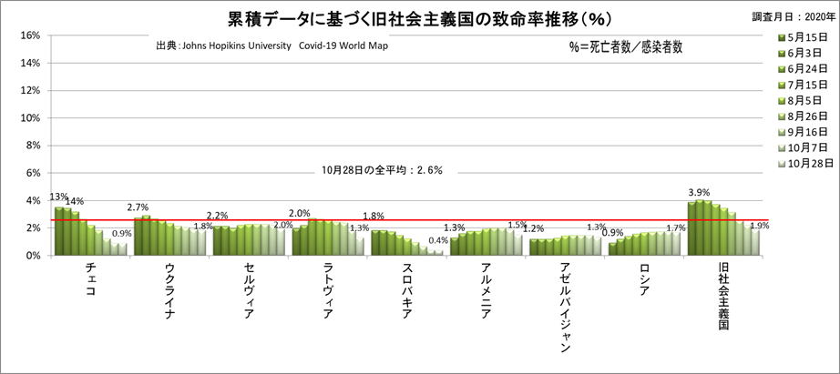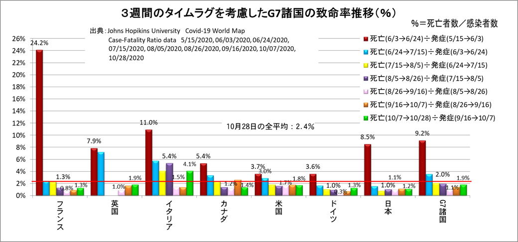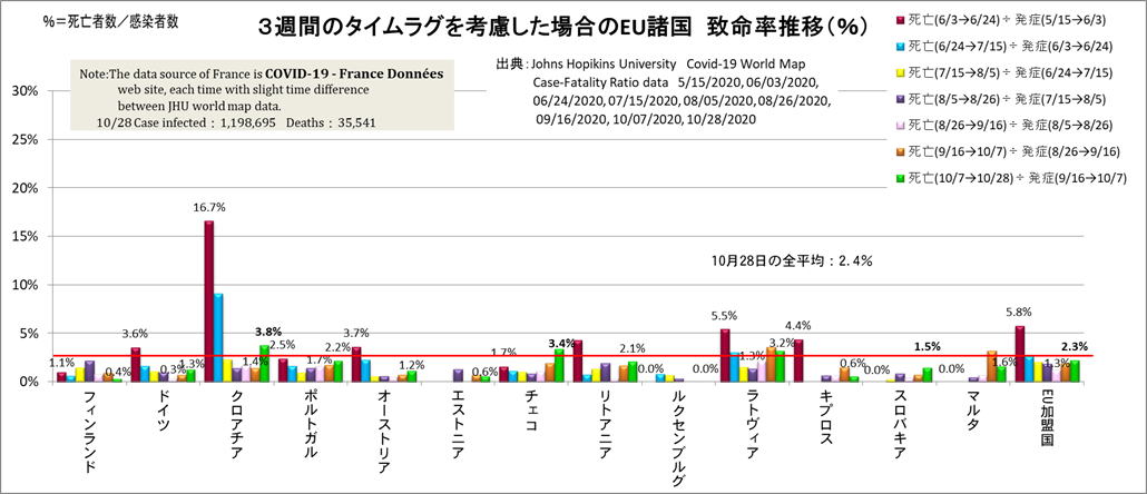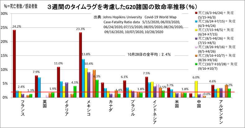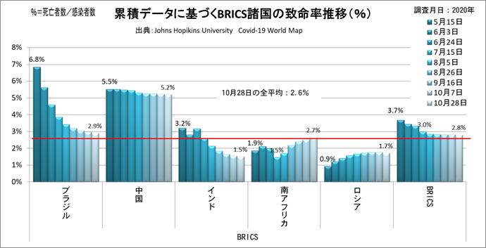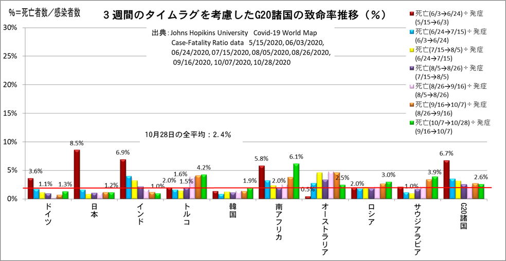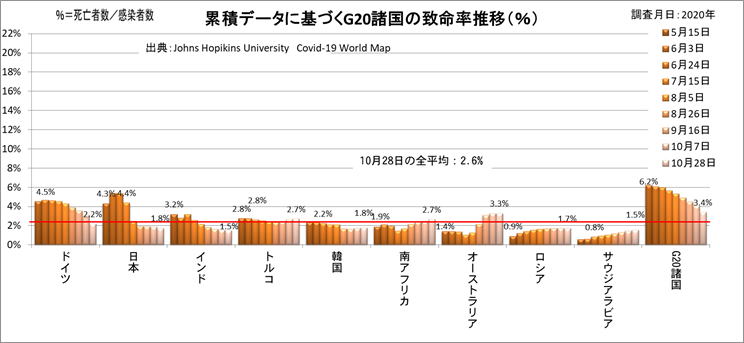 10月28日の累積のCFR平均値は2.6%、タイムラグを考慮したCFR平均値