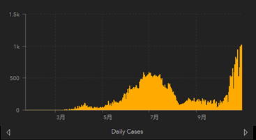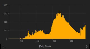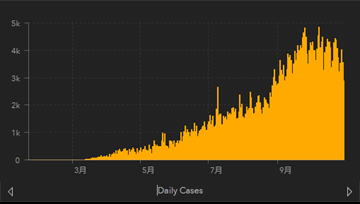 メキシコ 感染者:901,268 死亡者: 89,814 10月5日に28,000人超の感染があり、同日2,700人超が死亡