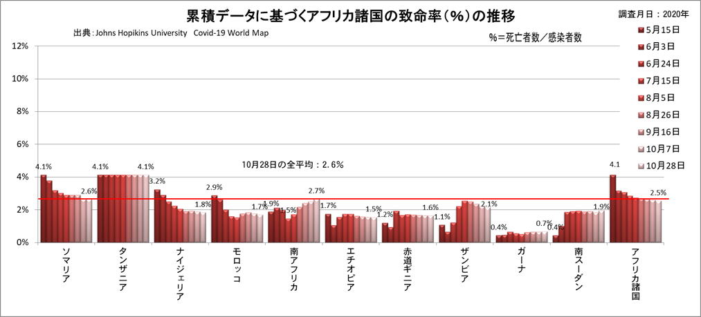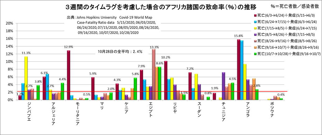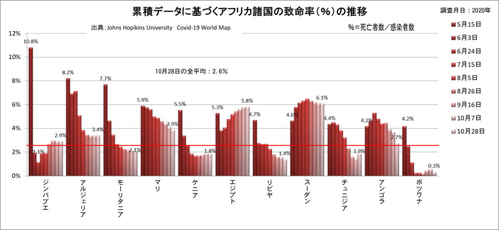 ・10月下旬の世界の平均値2.4%を超えているのはジンバブエ、アルジェリア、ケニア、エジ