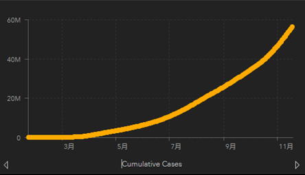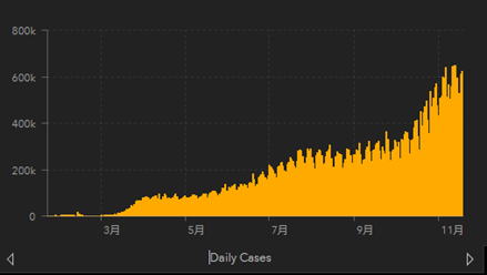 1.感染者数推移 (56,991,000件)と 右端:11月19日(650,000人)(データとして反映されているのは2020年11月18日分まで)
