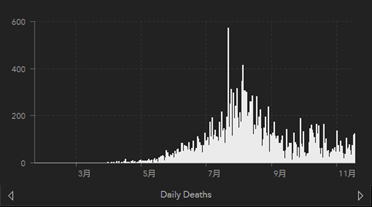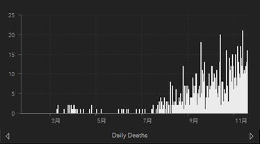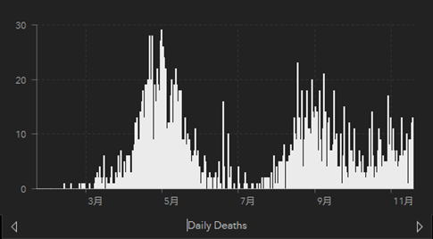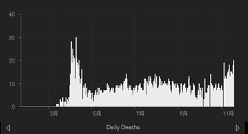 数は7月に一日3人の死亡が5日ほど続いてピークとなっていた。11月に入ってからの死亡