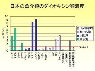 ドイツ政府が提案した魚類中ダイオキシン類の目標値である 0.6pg-TEQ/g は、過去、米国環境保護庁(EPA)が魚類摂取警報値として示した値に比べ2倍厳しいものとなっている。