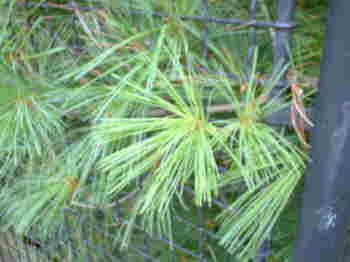 チェコ・プラハ近郊の松の針葉 ↓ 撮影地点:プラハ北部の住宅地一角。 |