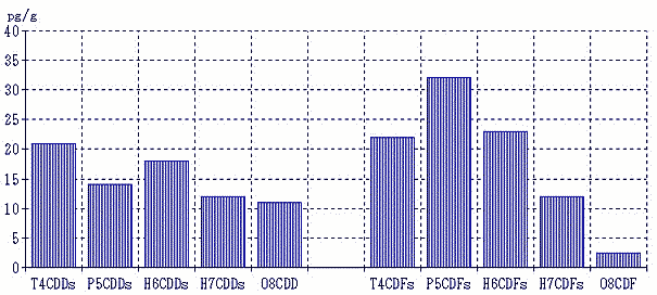 図7−7 綾瀬市(2.7pg-TEQ/g) ダイオキシン類(PCDD+PCDF)