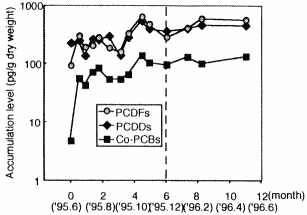 出典:Masaru Ikeda, Time trend on accumulation of PCDDs, PCDFs and Co-PCBs