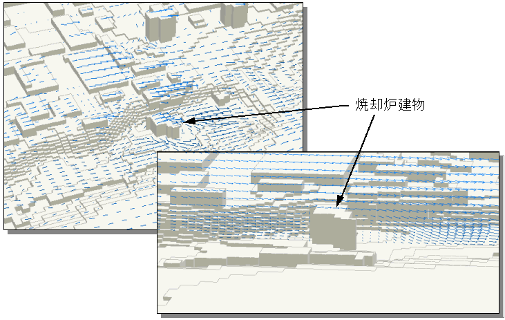 図5−5 2次元流体シミュレーションによる建築物の影響予測の例