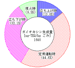 たち上げ、立ち下げ時にダイオキシン類の排出量全体の約半分が発生するとされている。しかし、厚生省のマニュアルでは、「ダイオキシン類及びコプラナーPCBsの測定は、4時間平均を基準とし炉の焼却状態が安定化した時点から、最低1時間以上経過した後に試料採取を開始する」としており(表2−1)、焼却炉の燃焼条件、燃焼管理が一番良好なときに4時間だけ試料採取することを奨励している。