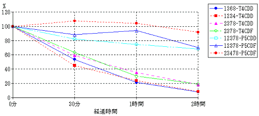 図2−7 ろ紙上でのダイオキシン類の揮散(%)