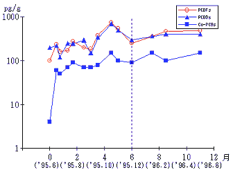 出典:Masaru Ikeda, Time trend on accumulation of PCDDs, PCDFs