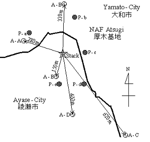 | 厚木基地内 | P-b | 250 | 北 | 53.1 | 夏場風下 |