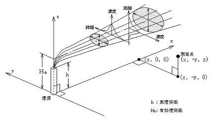 図4−1 水平および垂直面の大気汚染の拡散の物理モデル化 |