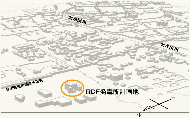 図5−3 大牟田RDF(ごみ固形化燃料)発電所予定地周辺の地形の例