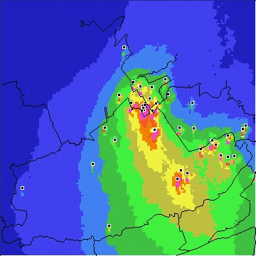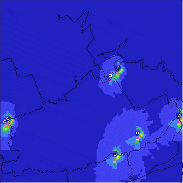 図7 処分場から飛散するダイオキシンのシミュレーション結果(DXNの飛散1)
