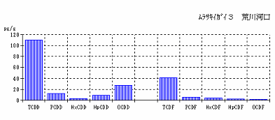 一方、東京都が実施した平成10年度東京都内湾のDXN類生物汚染状況調査結果によると、隅田川河口、荒川河口、多摩川河口、中央防波堤外側の各地点から採取した10サンプルのムラサキイガイの平均毒性等量はPCDD+PCDFが