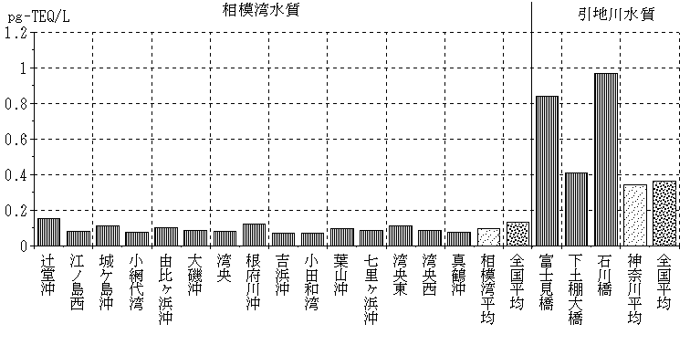 平成13年12月に環境省が公表した「平成12年度 ダイオキシン類に係る環境調査結果」をもとに引地川及び相模湾の水質・底質の汚染状況を整理した。