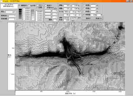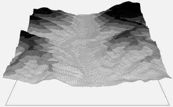 図2−2 スプライン補間による地域の地形(住宅地図2)等高線より作成) |