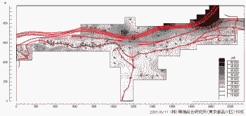 | (スプライン補間図、環境総合研究所作成)注)太線は道路および鉄道の位置 |
