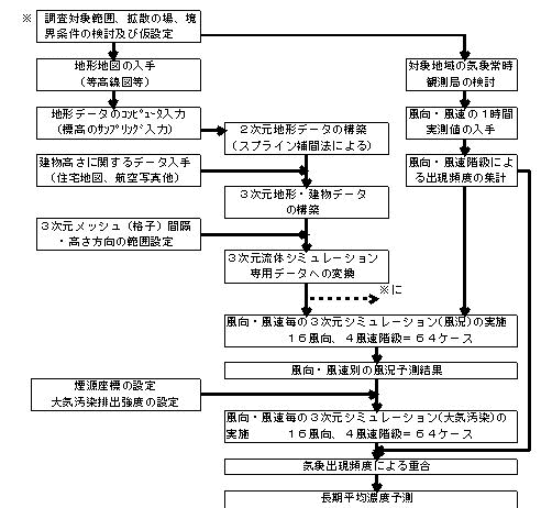 | 図4−1 3次元流体モデルによる大気拡散シミュレーションの調査手順の概要 |