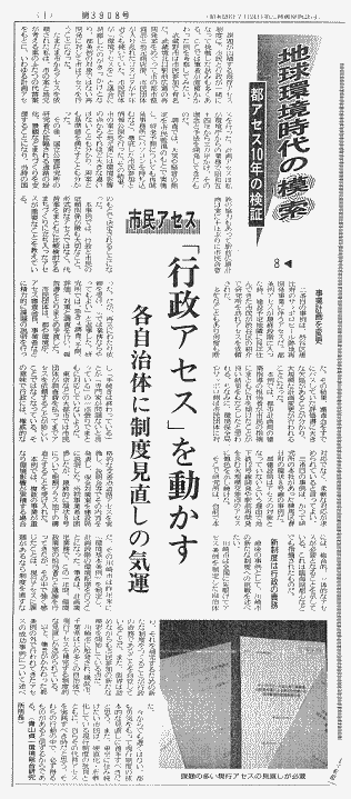 ■第三者的立場を堅持 スタッフに共通しているのは、「環境分野で社会正義を実現すること」、「あらゆる場面で第三者的立場を堅持すること」だ。 それらの理念を実現する道具としてコンピュータ、情報システム、分析技術、通信技術、語学などソフトな技術を使いこなしている。 ERIが独自に開発した高度な情報システムやソフトウェアは優に30種を超える。さらに省庁、自治体や国公立研究機関に、多くのシンパがいるのもめずらしい。 ERIは積極的に「出る杭」になる。「出る杭」になりながら、へこたれない。毎日、日本を世界を西に東に現地調査、講演に飛び回わっている。所長の青山はすでに世界50カ国、120以上の都市に飛び回っている。 ![]() 第三者的立場の調査の重要性(神奈川新聞) さらに青山は過去衆議院、参議院の環境委員会などから9回も参考人などとして招致され、環境政策、環境法に関連し証言している。