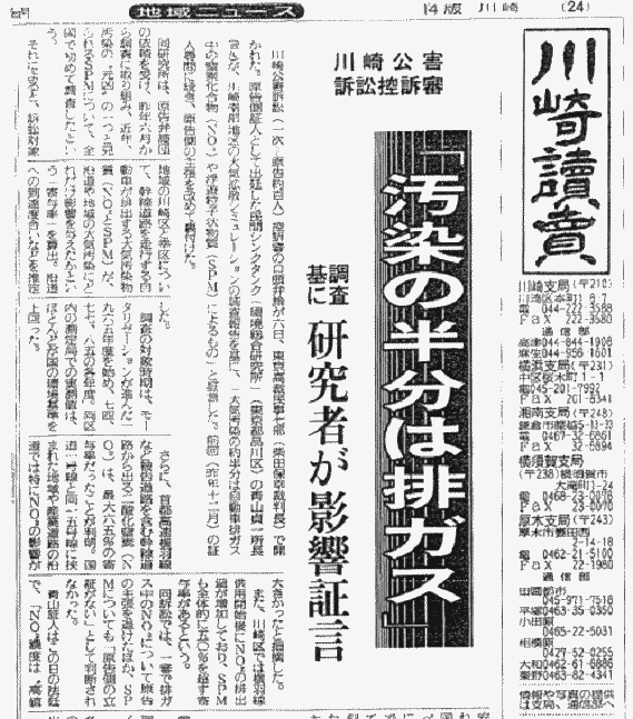 ERIは全国各地の環境紛争、環境訴訟にも積極的に関与し、証拠提出、意見書提出、鑑定人、証人として参加している。係わった環境裁判だけですでに50件を超えている。ERIは多くの環境弁護士と連携してきた。 大きなものでは川崎公害裁判。この裁判では東京高裁の控訴審において、自動車排ガス解析や高度なシミュレーションをもとに東京高裁の証言に立った。 ![]() 川崎公害訴訟控訴審(東京高等裁判所)青山貞一証人出廷時の記事 読売新聞 1996年2月7日