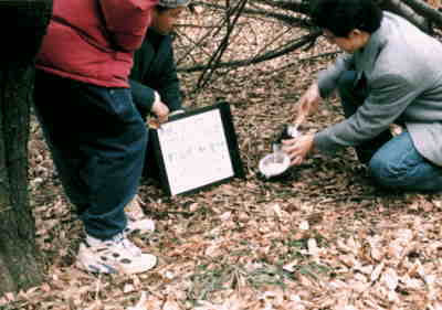 ERIはこの分野の日本の談合体質に大きな風穴を開けた。全国各地の大学研究室、小規模自治体、企業、NPO、市民が明朗会計な分析サービスを行う道を開いた。 ![]() 海外機関連携の最初の成果(朝日新聞一面トップ) ![]() 土壌を住民と一緒に採取する鷹取調査部長(柳泉園焼却炉の近くで) ![]() 焼却灰を含む土壌に含まれるダイオキシン分析(栃木県大田原市にて) アウトソーシングのダイオキシン分析をベースに、1999年から池田が中心となり、松葉を生物指標とした全国ダイオキシン監視調査を市民参加で行っている。 九州、中国地方ではすでに7年にわたり監視調査を継続している。研究成果を国際ダイオキシン会議に英論文とし提出し毎年発表している。また各国の研究者と議論・交流している。