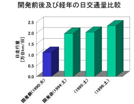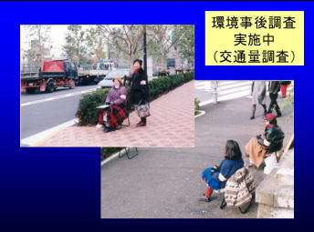 From June 1994, the monitoring station also began to monitor CO2 (carbon dioxide), a key greenhouse gas. In December of the same year, the station also began to measure suspended particulate matter (SPM) and possibly became the world's first NGO operated regular environmental monitoring station. CITIZEN PARTICIPATION AND THE ASSESSMENT FOLLOW-UP In addition to operating an environmental monitoring station to assess the environmental impact of the massive urban redevelopment project discussed above, ERI and local residents conducted a three year comprehensive environmental survey. The results of the survey were compiled into the "Yebisu Garden Place Follow-up Report" and distributed at a conference for local residents, the developers and relevant government bodies. Diagram 4 illustrates the location of the measuring stations used in the comprehensive environmental survey and lists the various substances monitored. The survey not only compared the developer's EIA and the alternative EIA in terms of predicted traffic volume and environmental impacts of construction and facility use, it also compared and analyzed "before and after" air pollution levels, noise, vibration, wind direction and wind speed in the project area. All of these results were compiled into the final report. In April 1995, a Follow-up Environmental Survey conference was held at the Yebisu Social Education Center to discuss the results of the survey. About 30 local residents, developers, researchers and government officials gathered and discussed the impacts of the YGP project based on the results of the comprehensive environmental survey. Diagram 5 shows traffic volume measurements taken in the area surrounding the YGP project before the project began and after its completion. Both local residents and the developers for the first time were able to see, through continuous environmental monitoring before, during and after the construction phase, the environmental impact of a major development project. As well, it became possible to judge the degree of precision in forecasting and assessment in other ongoing EIAs. In short, the survey made it possible to know to what degree other EIA predictions could be trusted.