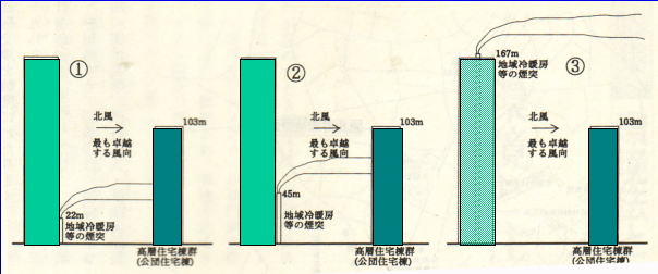 In the beginning of March, the council and a local resident, Mr. Kuroda, met with the Construction Guidance Section chief again, this time pointing out the implications of the Tokyo Metropolitan Government's decision to allow a significant relaxation of the floor space index regulations for the YGP project. On 6 March the Pollution Investigation Committee met, but no agreement was reached between the council and the developer. On 12 March, a question regarding the relaxation of the floor space index was brought up in a House of Representatives Budget Committee meeting. On 28 March, in the developer's shareholders' meeting, discussion took place regarding the council. A second meeting of the Pollution Investigation Committee was held on 19 April, but no significant progress was made. On 17 May, the council met with the heads of the Bureau of City Planning's Dispute Arbitration Office and the Construction Guidance Section and formally requested arbitration. On 10 June, the Tokyo Metropolitan Government, through the Pollution Investigation Committee, conducted the first dispute resolution session. The second session was held on 18 June and the third on 28 June. On 29 July the fourth session was held. The developer made no concessions in any of these sessions. However, by the second half of 1991, as a result of steady negotiations with the Pollution Investigation Committee, the Dispute Arbitration Office, the Construction Investigation Committee and even at the shareholders' meeting, the council was finally able to win some design and planning concessions from the developer. Of particular importance were the concessions won regarding the height of the smokestacks for the regional heating and cooling facilities. An agreement was first reached to raise the height from 22 to 45 meters. However, a final decision was made to remove one elevator from the planned office building and convert the remaining 166 meter high shaft into a smoke stack. Thus, emissions could disperse from the roof of the 167 meter high building (see diagram 2). The headline of a 7 August 1991 Asahi Shimbun (evening edition) article summed up the situation as follows:"Citizens' Assessment Changes Plans for Too Low Smokestack in the Shibuya Meguro Sapporo Beer Factory Redevelopment Site". The article went on to praise the alternative assessment for making possible important design changes that would not have occurred under Tokyo Metropolitan Government regulations.
