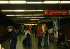 池田さんが、おそらくここにも地下鉄(メトロ)が来ているはずだ、と言って探検にゆく。と言うのもこの中央駅はいわゆるプラハの中央駅と離れていて、まずは国際列車の中央駅からプラハ中央駅まで列車をのり次がないといけない、と言われていたからだ。結局この中央駅まで地下鉄が来ていた。次は切符をどう買うかだ。両換えをしたもののさっぱりわからなかった。どうにか2人分の地下鉄切符を購入し、重い荷物をもって、地下に入った。地下鉄の構内は広く立派だ。旧体制のときには防空壕として利用できるように設計されたのだろうと想像できた。