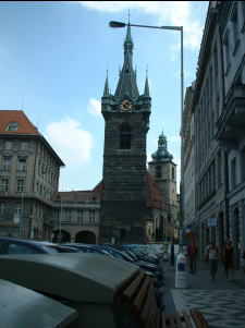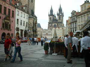 カレル橋からプラハ旧市街に入る。路地には多くのおみやげやが軒をつらねている。有名なボヘミアン・グラスの本拠地でもあるようでスワロフスキーの本店とおぼしき店もある。チンスキー寺院の前のカフェテラスで食事をとった。食事、清涼飲料、テーブルチャージを含めて600kyだ。内容からすると高額だが、世界の観光地なのでがまんする。