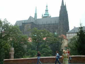 カレル橋の一つ前の橋を渡り、対岸側の遊歩道を歩く。ここからのプラハ城の眺めも格別である。カレル橋は、世界各国の観光客がごったがえしている。橋の途中では、生のバンドが何曲も演奏し、それを遠巻きに観光客が見ている。トルコのイスンタブールの欧州とアジアの間にかかる橋もそうだったが、橋は平和のシンボルである。一方、ひとたび戦争が起こると最初に破壊されるのも橋だ。何と私たちがこの橋を旅した数日後、あの大洪水が起きた。