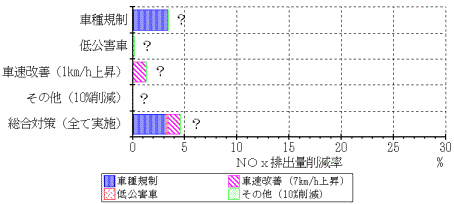 現行法による国の総量削減基本方針、都府県の総量削減計画では単体規制、車種規制以外は、要請・指導・キャンペーン(大気汚染高濃度時、アイドリングストップ等)によるものが多く、効果の期待できる対策がほとんどみられない。低公害車は、特定地域の目標台数約三十万台に対して、実際の普及台数約1万台(うち約7千台がハイブリッド車)であり、多少の補助金・キャンペーンだけでは不充分であった。