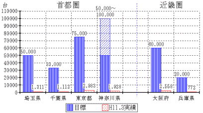図4−1 低公害車普及目標と実績(H11.3末現在)