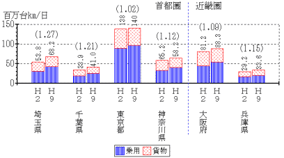 「自動車走行量の伸びにより、単体規制、車種規制の効果が相殺」されて目標が達成できなかったと環境省資料にあるが、東京都は交通容量が飽和状態であり走行量は横ばいである。