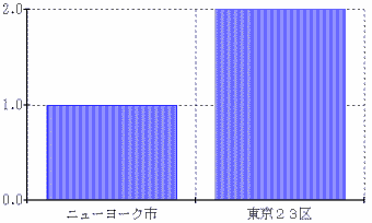 図13−1及び図13−2にあるように、東京23区は、ニューヨーク市(NYC)に比べても人口密度で1.5倍、フロアー密度で2倍の超過密都市である。しかも自動車交通を呼び起こしやすい商業業務的な土地利用の割合が多い。したがって、一極集中、大都市集中、商業業務的土地利用、さらに大きな容積率をそのままに、自動車排ガスだけを規制しようとしても無理がある。