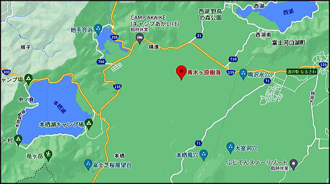 ![]() 青木ヶ原樹海 出典:尾林英夫氏 グーグルマップストリートビュー 全体メニュー 青木ヶ原樹海1 青木ヶ原樹海2 青木ヶ原樹海3 その昔、青木ヶ原樹海は、一度は行ったら元に戻れないとか、殺の名所等と言われたわれたが、今は県道139号線や県道71号線が周囲を走り、スマホやGPSによりそんなことはなくなったという。とはいえ、やはり青木ヶ原樹海は、樹木がうっそうと生い茂り、やはり不気味な存在であることは間違いないだろう。 私たちは精進湖や本栖湖のあたりをぐるぐると車で回ったこともあり、今の青木ヶ原樹海をみることができた。 ![]() 青木ヶ原樹海と富士山、富士五湖 青木ヶ原樹海概要 Wikipedia 青木ヶ原樹海、あるいは富士の樹海とも呼ばれ、山頂から眺めると木々が風になびく様子が海原でうねる波のように見えることから「樹海」と名付けられたという説もある。樹海の歴史は約1200年とまだ浅く、若い森である。 富士箱根伊豆国立公園に属し、富士山原始林及び青木ヶ原樹海という名称で、国の天然記念物に指定[1]されている。このほか国立公園の特別保護地区に指定[2]されており、世界文化遺産「富士山-信仰の対象と芸術の源泉」の富士山域に含まれる。 地理 ![]() 青木ヶ原珠海 出典:グーグルマップ 富士の樹海に伝わる「5つの都市伝説」の真実 「コンパスが効かないから迷う」は本当なのか 出典:東洋経済新報社 村田 らむ : 著者フォロー2018/08/06 8:00 「秘密の新興宗教がある」という都市伝説もあります(写真:noririn/iStock) 僕がライターとして青木ヶ原樹海に通い始めて約20年になる。回数は正確には覚えていないが100回は超えている。 「樹海」はややもすると呪い渦巻く異界のように思われているフシがあるが、山梨県に実在する緑生い茂る森である。インターネットで「青木ヶ原樹海 住所」と検索すれば 〒401-0300 山梨県南都留郡富士河口湖町精進 と郵便番号まで振られている。「樹海」という言葉には、場所・地名としての意味と、ある種の伝説的な暗部を含んだ意味の2つの側面があるようだ。 拙著『樹海考』でも記しているが、樹海の地面は溶岩であるため固い。 樹は地下に根を張ることができず、地表にウネウネとはっている。運良く根を張ることができた樹も、育つとともに根本の溶岩が割れてステンと倒れてしまう。そのためすごい数の倒木がある。倒木や溶岩の表面はジトッと湿気っており、苔(こけ)が生えている。一面が青く苔むしているから「青木ヶ原」と呼ばれるようになったといわれている。 歩いていると、ザザザッと風が樹を揺する音がする。木漏れ日がスッと差し込んでくる。すぐに方向感覚はなくなって、二度と出られないような気がした。 散策の過程で、自殺死体を何体か見つけた。死体を探すために樹海を訪れる「死体マニア」とも知り合いになった。樹海の中で自殺しようとしている老婆姉妹を助けたし、樹海の真ん中にある謎の施設にも足を運んだ。 青木ヶ原樹海の5つの都市伝説 今回は世間でよく語られている、青木ヶ原樹海の5つの都市伝説について答えていきたいと思う。 1、樹海はコンパスが効かない迷いの森である。 2、樹海にはそこら中に死体が転がっている。 3、樹海には人を襲う犬や熊などの動物がいる。 4、樹海には、自殺に訪れたが死にきれなかった人が作った村がある。 5、樹海には、独自の新興宗教がある。 これはとてもよく言われる都市伝説だが、ウソである。初めて樹海に入った時は、地図とコンパスだけでほぼ正確に樹海を抜けることができた。 本文の続きはここからご覧になってください。 青木ヶ原樹海3へ |