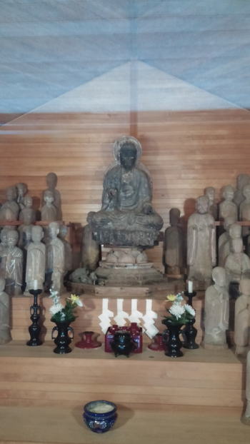 ![]() 天台山 羅漢寺(2018年10月31日撮影) 出典: CC 表示-継承 4.0, リンクによる 全体メニュー 大山祇神社 金櫻神社 夫婦木神社 羅漢寺 昇仙峡北部の滝 昇仙峡1 昇仙峡2 昇仙峡3 昇仙峡4 昇仙峡5 昇仙峡6 昇仙峡7 昇仙峡8 羅漢寺概要 山号 天台山 宗旨 曹洞宗 本尊 阿弥陀如来 開基 伝・俊屋桂彦、伝・有金(開山) 中興年 伝・大永年間(1521年 - 1527年) 中興 伝・俊屋圭彦 札所等 甲斐百八霊場第六十四番 文化財 木造阿弥陀如来坐像、木造五百羅漢像(県文化財) 羅漢寺 (甲斐市)の位置(山梨県内)羅漢寺 (甲斐市) 所在地 山梨県甲斐市千田4835羅漢寺 (甲斐市) ![]() 羅漢寺(らかんじ)の位置 昇仙峡の入り口近く、羅漢寺橋の北西にある 所在地 山梨県甲斐市千田4835羅漢寺 (甲斐市) 出典:グーグルマップ 羅漢寺(らかんじ)は、山梨県甲斐市千田にある寺院。現在は曹洞宗寺院で、山号は天台山、本尊は阿弥陀如来。 沿革 現在の羅漢寺は山梨県を代表する景勝地の一つ昇仙峡にあり、荒川右岸、標高1058メートルの羅漢寺山南東山麓に位置する。かつては「北山筋の高野山」と呼ばれた真言宗寺院で、旧地は現在地からさらに北西に位置し、荒川支流の羅漢寺沢沿いの斜面上にあった。 甲斐国では平安時代に天台・真言密教の影響で山岳信仰が成立し、甲信国境の金峰山は富士信仰と並ぶ御獄信仰の山となり、羅漢寺はその拠点となる修験道場であった。『甲斐国社記・寺記』によれば創建年代は不明だが、開祖は天台座主有金、開山は俊屋桂彦であるという。『甲斐国志』では創建は戦国時代の大永年間(1521年 - 1527年)で、中山広厳院(笛吹市一宮町金沢)4世住職の俊屋圭彦が中興して末寺とし、曹洞宗に改めたとしている。 諸堂は慶安4年(1651年)3月の火災で焼失して廃寺(羅漢寺廃寺)となり現在地に移転したと考えられているが、『国志』によれば小堂が建てられて活動が続けられていたという。昭和60年(1985年)には寺域の発掘調査が実施され、本堂や庫裏の遺構が確認され、陶磁器や金属製品などの遺物も出土している。 文化財 県指定文化財 ・木造阿弥陀如来坐像 - 昭和59年(1984年)11月8日指定 ・木造五百羅漢像 - 昭和59年(1984年)11月8日指定 ![]() ・参道入口(2018年10月31日撮影) 出典: CC 表示-継承 4.0, リンクによる ![]() ・参道入口(2020年10月撮影) 出典:U Hi氏 グーグルストリートビュー ![]() ・羅漢寺橋(2020年10月撮影) 出典:YATYA 777氏 グーグルストリートビュー ![]() ・本堂(2018年10月31日撮影) 出典: CC 表示-継承 4.0, リンクによる ![]() ・羅漢寺の木造阿弥陀如来坐像と木造五百羅漢像 出典:CC 表示-継承 4.0, リンクによる 参考: ・笹本正治「天台山羅漢寺をめぐって」『甲斐の美術・建造物・城郭』(岩田書院、2002) ・研究例会「御獄信仰と羅漢寺-問題提起-」『甲斐路61』(山梨郷土研究会、1987) ・清雲俊元「甲斐金峰山信仰について」 ・末木健「羅漢寺跡発掘調査報告」 ・上松又次「天台山羅漢寺などの彫刻」 ・羽中田壮雄「御獄路南・西口の石造美術」 昇仙峡北部の滝へ |
