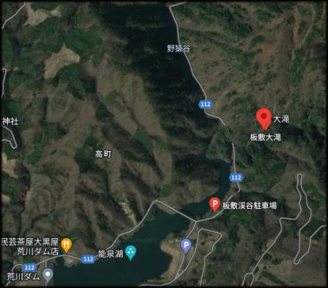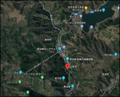 全体メニュー 大山祇神社 金櫻神社 夫婦木神社 羅漢寺 昇仙峡北部の滝 昇仙峡1 昇仙峡2 昇仙峡3 昇仙峡4 昇仙峡5 昇仙峡6 昇仙峡7 昇仙峡8 仙娥滝(日本の滝百選) 県道7号線、昇仙峡の北に位置し観光地なので案内板が有り、迷うことはない。奇岩や奇石が多く点在する昇仙峡にある滝で、両岸に狭まった岩盤の間を流れる滝。滝の落差は30mほどで、花崗岩の岩盤が削られてできた独特の景観を持った滝になっている。周囲の岩にある木々は、まるで日本庭園のようで、紅葉の時期には数多くの観光客が訪れる。 ![]() 仙娥滝の位置 出典:K Sakai氏 グーグルマップ ![]() 仙娥滝(日本の滝百選) 出典:K Sakai氏 グーグルストリートビュー 板敷大滝、大滝 「板敷渓谷 大滝」は、昇仙峡から大山祇神社を目指す112号線の向かって右手にある。美しい大自然の渓流と山道を歩くと高さ30mの大滝をみることができる。途中から急な山道・滑りやすい岩場を歩くため、健脚であることが第一条件で、さらに滑りにくい靴が必要である。サンダルやヒールのある靴では怪我をする恐れがあるのでダメ。 以下の地図のうち、112号線を北に向かって進むと大山祇神社がある。途中多くのトンネルがある。 ![]() 板敷渓谷 大滝の位置 出典:K Sakai氏 グーグルマップ 以下は、板敷渓谷 大滝の写真である。 ![]() 板敷渓谷 大滝 出典:YUKI氏 グーグルマップ ![]() 板敷渓谷 大滝 出典:K Sakai氏 グーグルマップ 昇仙峡1へ 全体メニュー |
