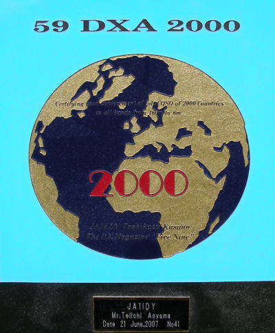 8つの周波数帯で合計2000の国及び地域と交信するために30年以上かかりましたが、これでひとつの区切りとなります。東京の都心部で雑音と闘いながらの受賞です。東京23区、とくに都心部で受賞しているのは2,3名のはずです。
